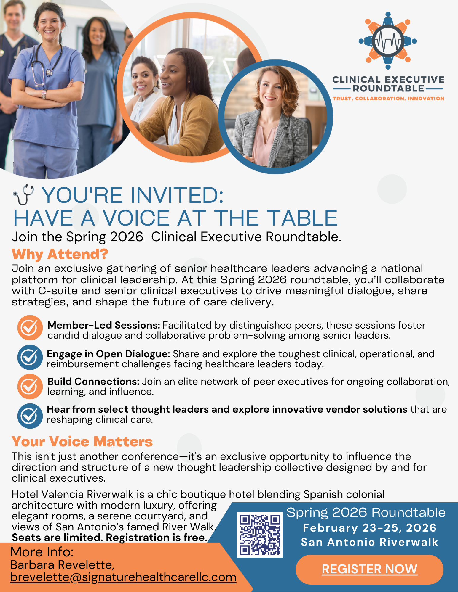 Bring Your Spouse/Guest to the Clinical Executive Roundtable! Spouses and guests are an important part of our Roundtable community, with many meaningful connections and friendships beginning at our events. Your spouse or guest is warmly invited to join us for the Welcome Reception and our group excursion—two of the highlights of the Roundtable experience. It’s a wonderful way to share in the collegial spirit and create lasting memories together.
